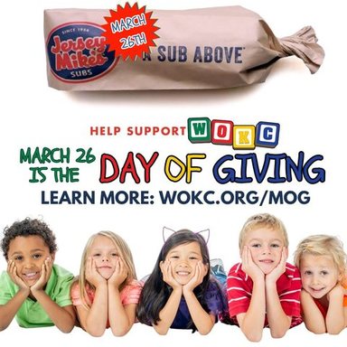 The highlight of the Month of Giving campaign is Jersey Mike’s Day of Giving on Wednesday, March 26, the largest fundraising opportunity of the campaign. On this day, customers are invited to visit their local Jersey Mike’s with 100% of the day’s sales, donated to WOKC.